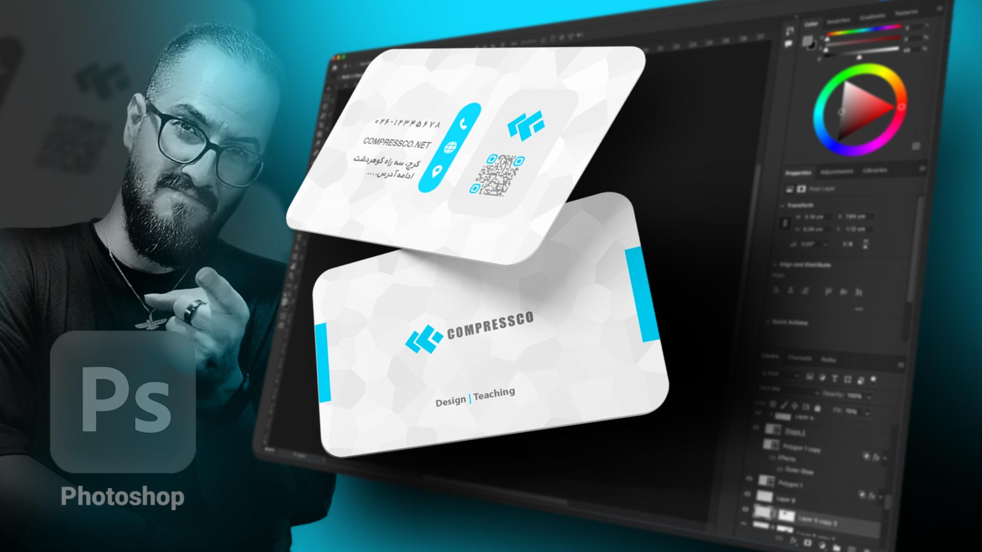 هنگامی که شروع به طراحی کارت ویزیت با فتوشاپ میکنید، بیتردید باید از رنگهای بسیار شاد و روشن استفاده کنید؛ تا کارت ویزیت شما چشمنواز و جذاب به نظر برسد، اما توجه داشته باشید که انتخاب رنگها باید با هویت و برند شما هماهنگی داشته باشد. علاوه بر این، از الگوها و عناصر گرافیکی منحصربهفرد استفاده کنید. این عناصر میتوانند شامل خطوط، شکلها، نمادها و پسزمینههای خلاقانه باشند. یادتان باشد که هدف شما ایجاد یک کارت ویزیت بینظیر و بهیادماندنی است، پس از خلاقیت بینظیر خود بهرهبرداری کنید. همانطور که در خروجی این آموزش کارت ویزیت ما هم مشاهده میکنید، از رنگهای بسیار روشن بعلاوه یکسری المانهای ساده، در عین حال جذاب و یونیک استفاده کردهایم.