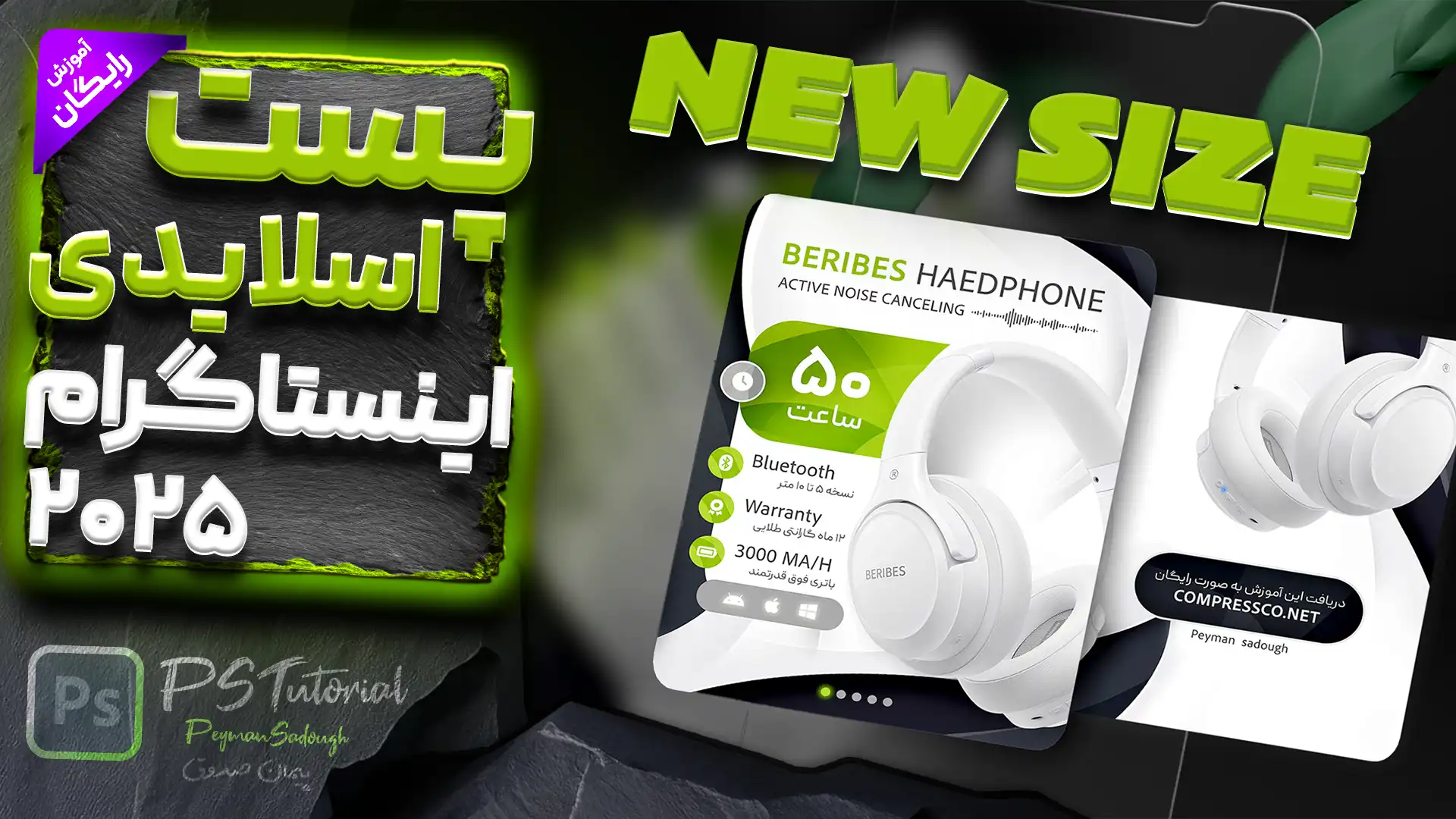 در این آموزش فتوشاپ برای اینستاگرام، مرحله به مرحله بهتون یاد میدیم که چطور یک پست اسلایدی حرفهای بسازید. از تنظیم دقیق ابعاد گرفته تا طراحی جزئیات و چیدمان، همه چیز رو با هم جلو میبریم. برای مثال، ما در این آموزش از تصویر یک هدفون به عنوان المان اصلی استفاده کردیم که با کمک ابزارهای هوش مصنوعی ساخته شده؛ اما باقی مراحل مثل طراحی بکگراند، افکتها و ترکیببندی، کاملاً داخل فتوشاپ انجام شده.