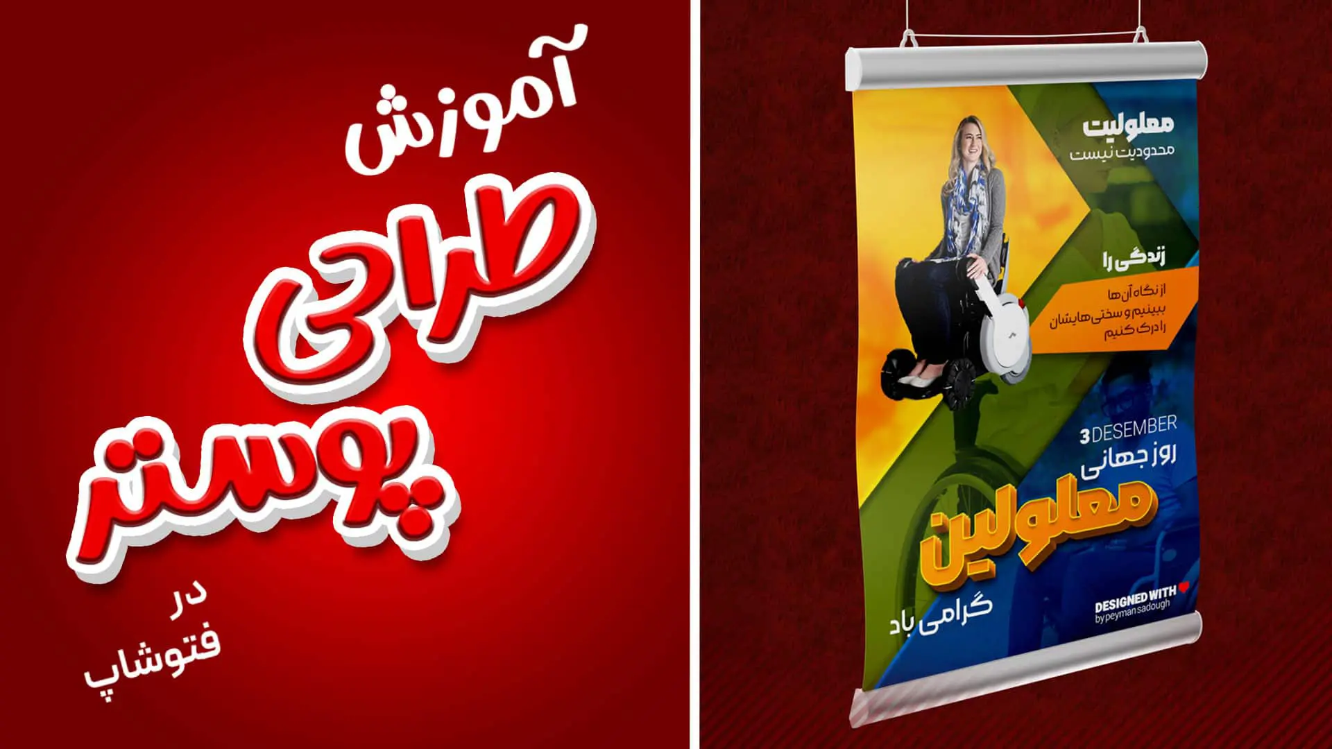 این آموزش طراحی پوستر، به درخواست یکی از کاربران کمپرس کو برای روز جهانی معلولین عزیز است. این آموزش جز دسته آموزشهای حرفهای و پر تکنیک فتوشاپ قرار میگیرد؛ که نیازمند داشتن دانش پایه و مقدماتی فتوشاپ به صورت کامل است. اگر تا الان با استفاده از آموزشهای رایگان، فتوشاپ رو یاد گرفتید پیشنهاد میکنیم حتما از آموزش گام به گام فتوشاپ دیدن فرمایید. روز جهانی معلولین هر ساله در تاریخ 3 دسامبر جشن گرفته میشود. این رویداد با هدف افزایش آگاهی درباره حقوق معلولین، ترویج شرکت معلولین در زندگی اجتماعی، و تسهیل شرایط زندگی آنان برگزار میشود. طراحی پوستر برای روز جهانی معلولین میتواند از اهمیت بالایی برخوردار باشد و میتوان از عناصری مانند رنگهای زنده و جذاب، تصاویری که نشان دهنده توانایی و استعدادهای معلولین باشند، و شعارها یا پیامهای الهامبخش استفاده کرد. برای طراحی پوستر در ارتباط با رویدادهای خاص مانند پوستر شب یلدا؛ باید سعی کنیم از المانهای مرتبط با آن روز بیشتر استفاده کنیم تا حس و حال بیشتری را به مخاطب منتقل کند.